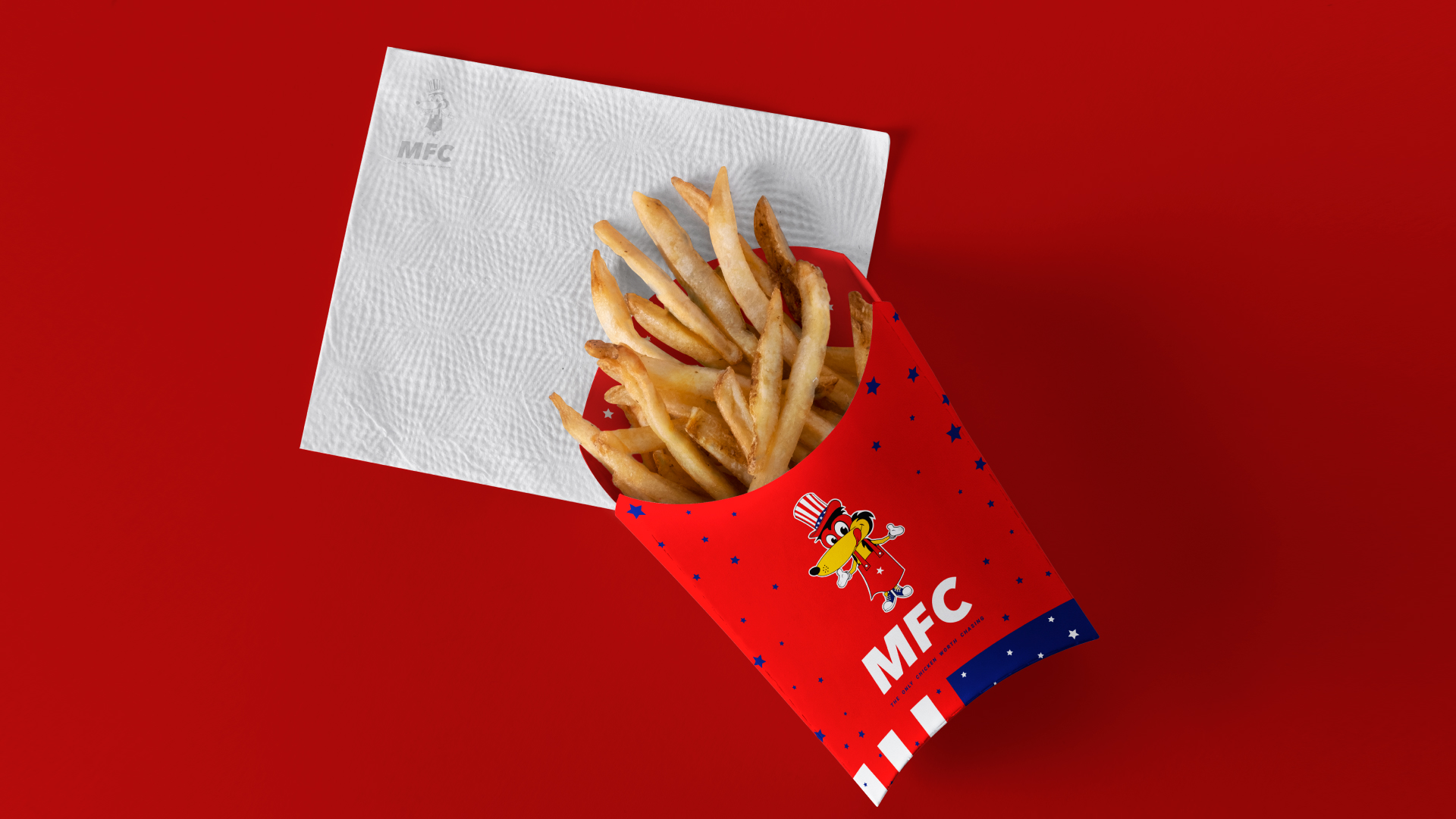 A bold and energetic brand identity for MFC – My Favorite Chicken Fry, designed to deliver instant recognition and strong appetite appeal.